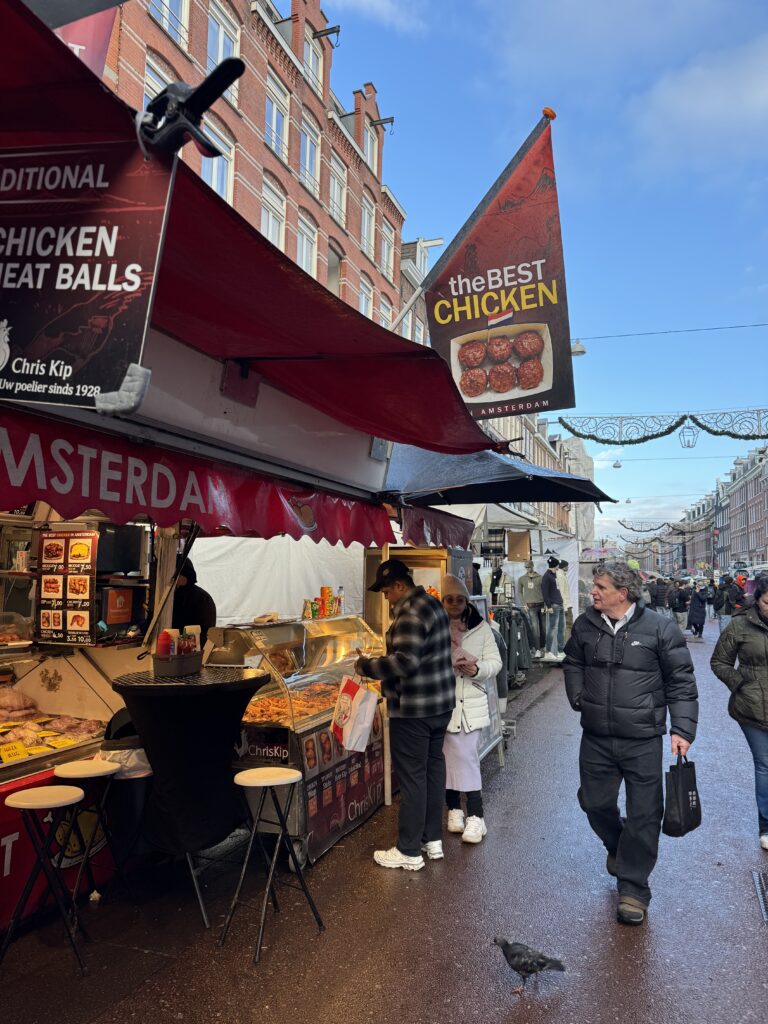 Grab a freshly fried kibbeling (Dutch battered fish) or some poffertjes (mini pancakes dusted with powdered sugar) and sample the fried foods Amsterdam is known for in the street markets. Treat yourselves to chicken on a stick and eat while walking the stalls. My husband and I still dream about that delicious chicken! The energy is infectious, the snack options incredible and the prices surprisingly kind to your wallet.